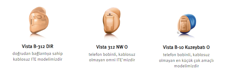 Vista kulak içi (ITE) işitme cihazları , kulağınızın şekline tam uyum sağlayacak şekilde özel olarak üretilmiştir . Vista ITE'ler tamamen kanal içi ve çoklu teknoloji seviyeleri dahil olmak üzere üç stilde mevcuttur .